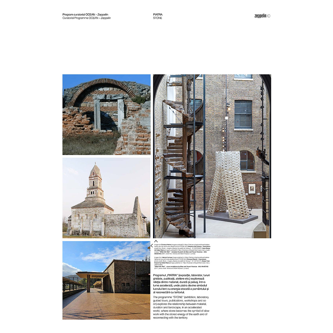 PIATRA (2026). Explorează durata, materia și peisajul prin prisma tradiției constructive în piatră. Piatra devine simbolul reconectării cu teritoriul și al sustenabilității lente. Expoziția și programul conex aduc exemple din România și din context internațional, incluzând cercetări despre piatră ca material al viitorului reînvățat prin tehnologie, roborică și meșteșug.